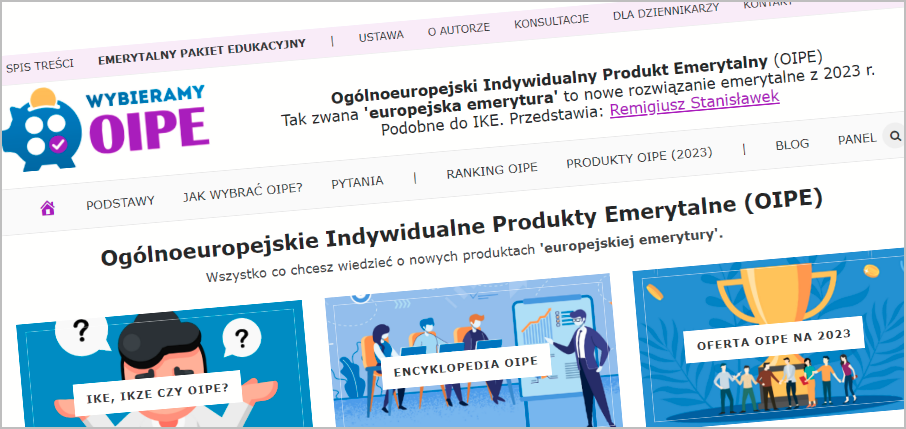 Jeżeli interesują Cię wszelkie możliwe szczegóły – to zapraszam na stronę Wybieramy OIPE gdzie zebrałem pełną wiedzę na temat Ogólnoeuropejskich Indywidualnych Produktów Emerytalnych i odpowiedzi na wszelkie możliwe pytania. W tym przegląd i analizę oferty produktowej.